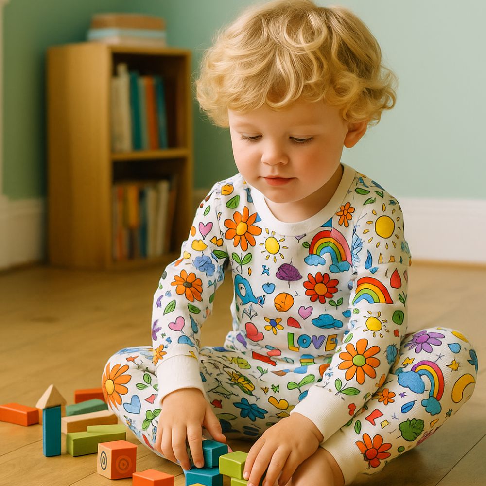 Stamp & Color™ est un pyjama créatif qui transforme le coucher en aventure ludique et éducative.