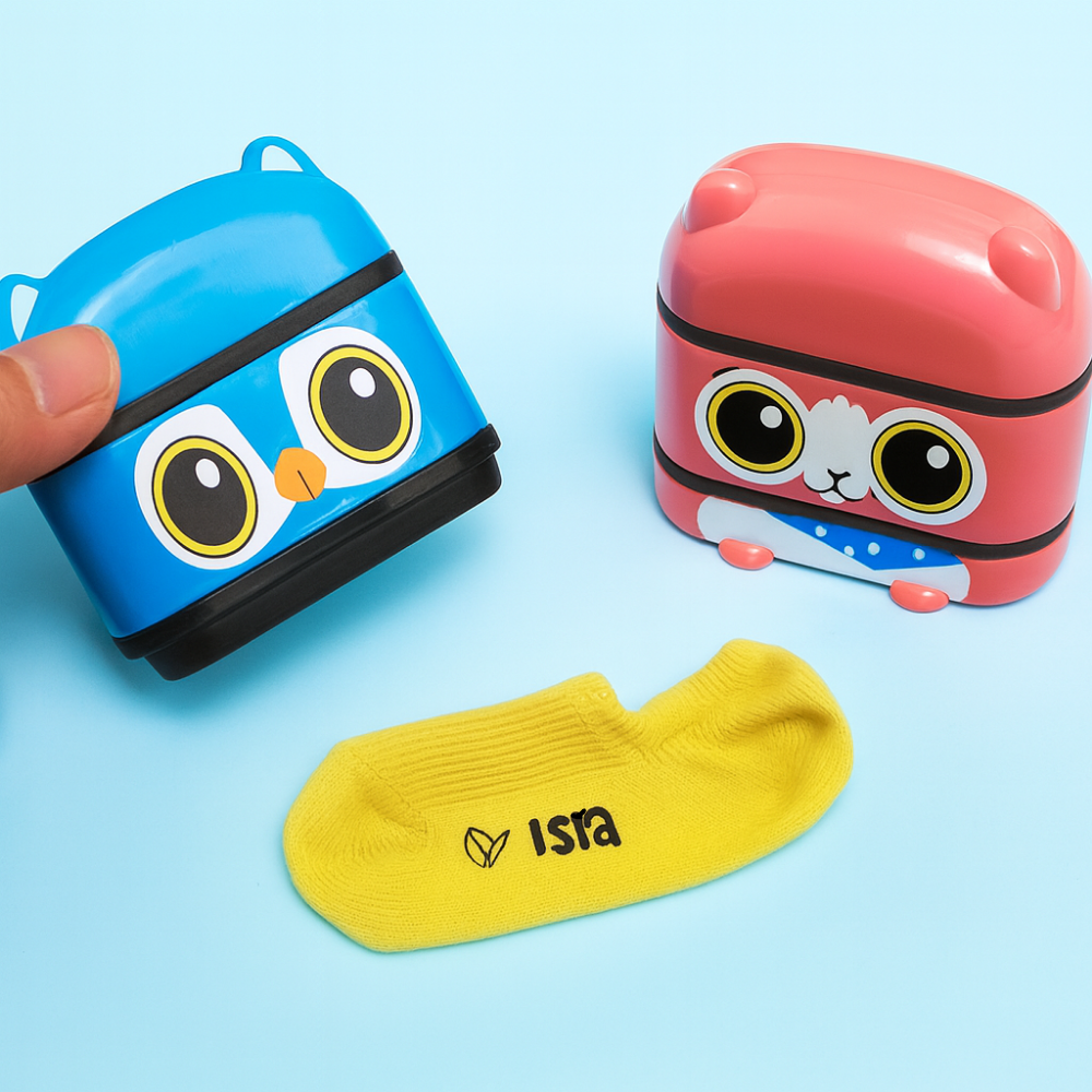 KidyStamp™ est un tampon prénom personnalisé pour identifier vite et proprement les vêtements & objets d’enfants.