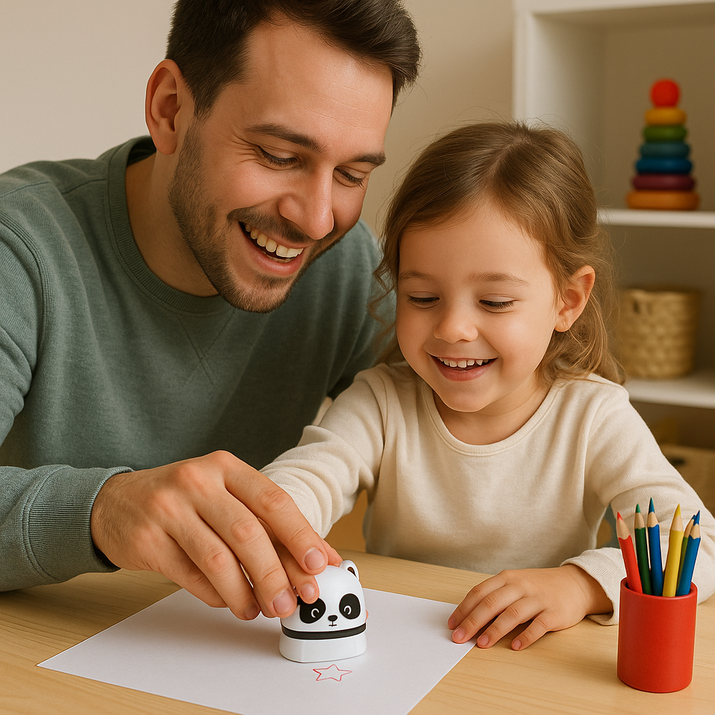 « Ma fille choisit elle-même son tampon panda pour marquer ses cahiers et vêtements, elle est super fière ! »